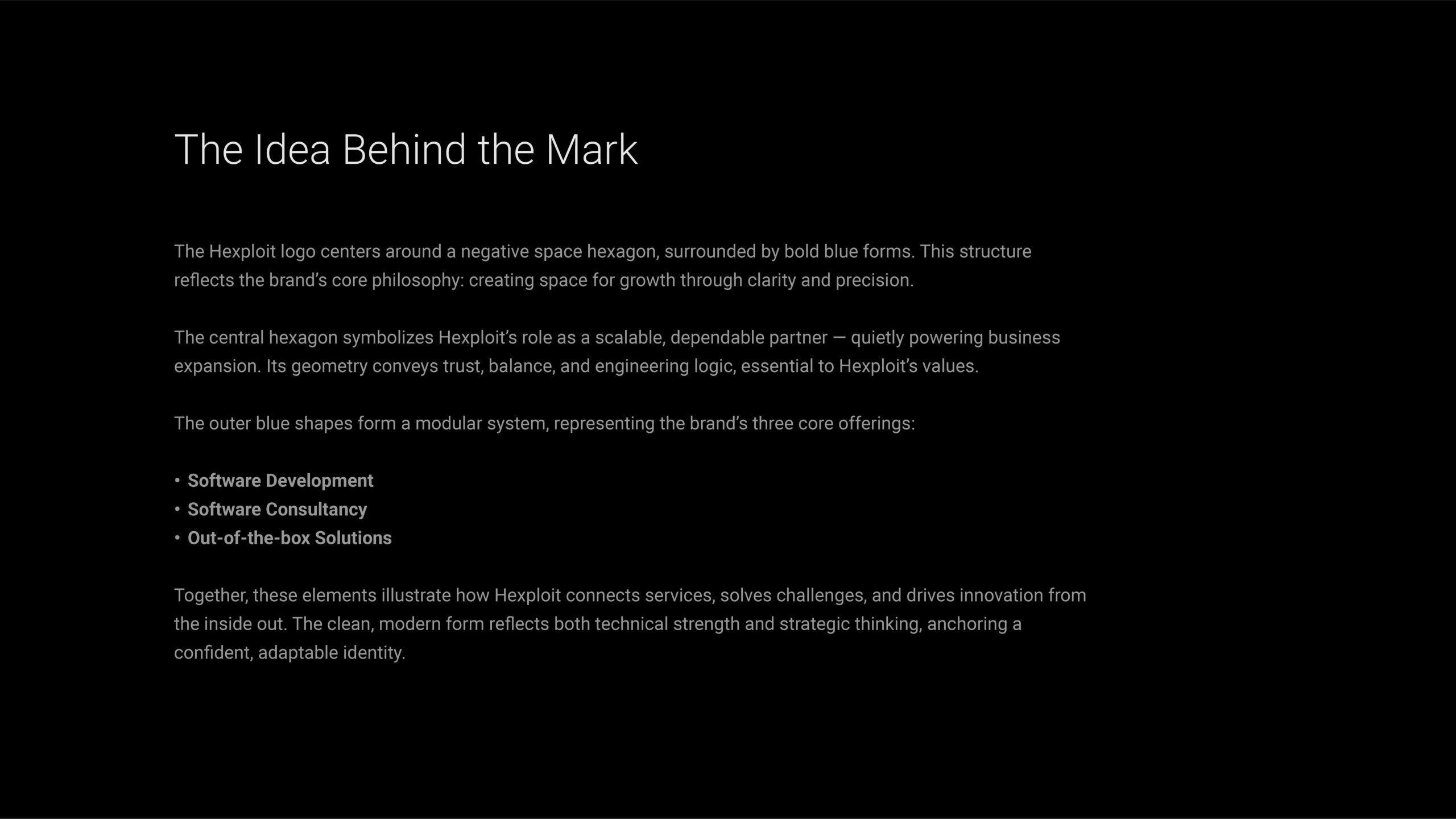 Hexploits is a modern software consultancy focused on guiding SMEs through cloud transitions and technical upgrades. I created a clean, geometric brand identity centered around a hexagonal concept—symbolizing precision and adaptability. The branding system includes a minimalist logo, clear typography, and a cohesive palette, designed to work seamlessly across both print and digital touchpoints.
